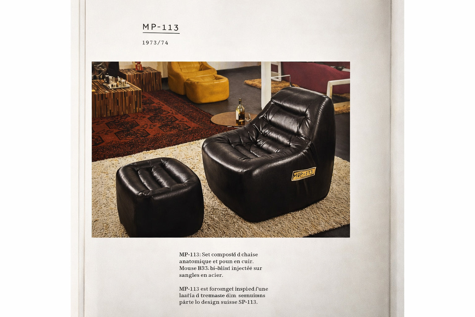 The MP-113 exemplifies Lafer’s radical departure from traditional joinery-based furniture toward injected foam construction, a defining innovation of his studio. By integrating structure and cushioning into a single engineered form, Lafer achieved a sculptural softness and ergonomic depth that redefined Brazilian seating during the period. The result is not merely comfort-driven furniture, but industrial modernism translated into domestic scale.