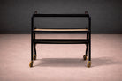 Produced in the 1950s by Movéis Artesanal—the workshop that would evolve into Forma under Carlo Hauner and Martin Eisler—this bar cart reflects the experimental spirit that defined early Brazilian modern design. The structure is executed in hardwood, its angular supports creating a dynamic, slightly splayed stance that conveys both stability and movement.