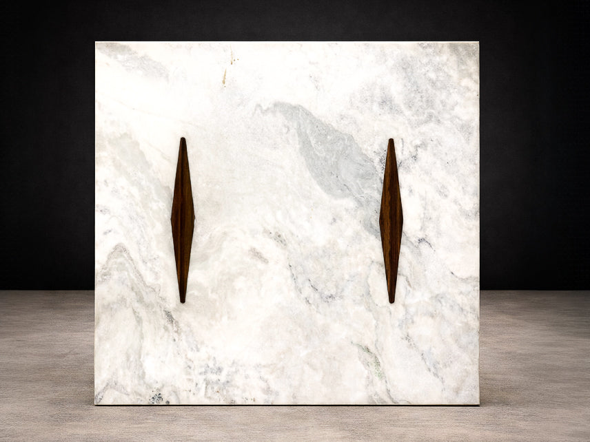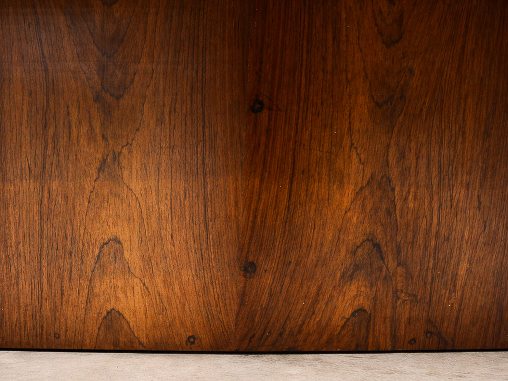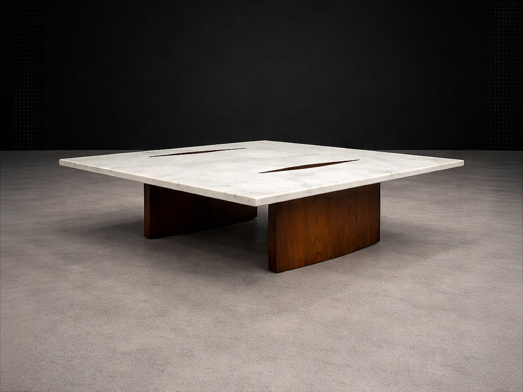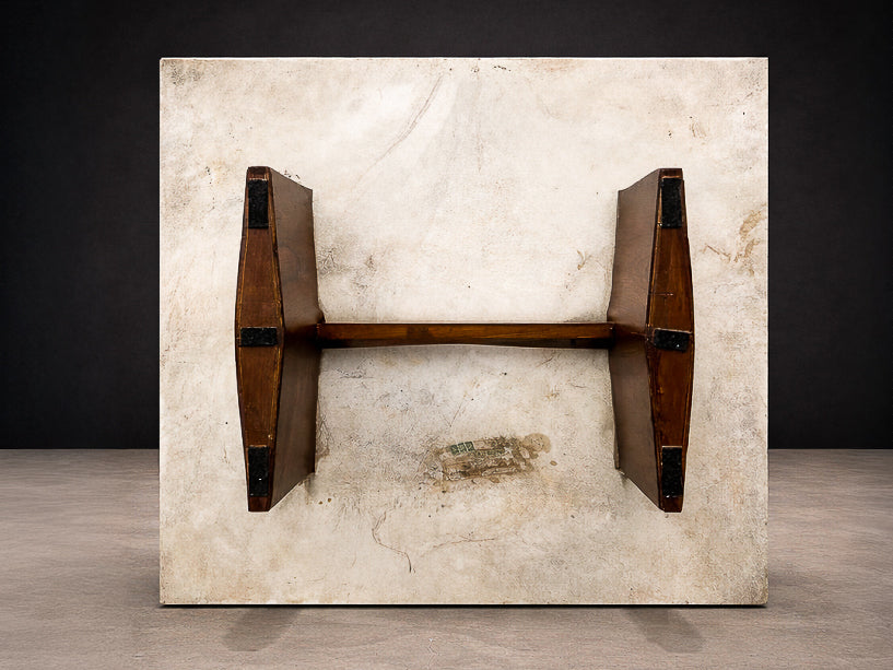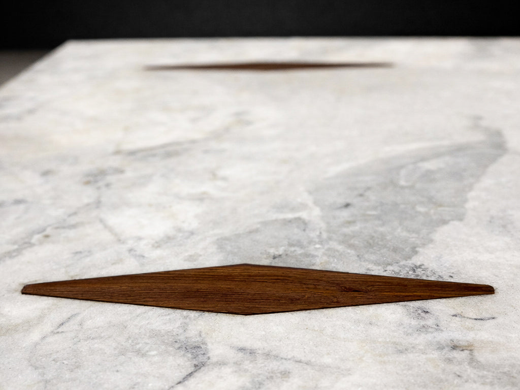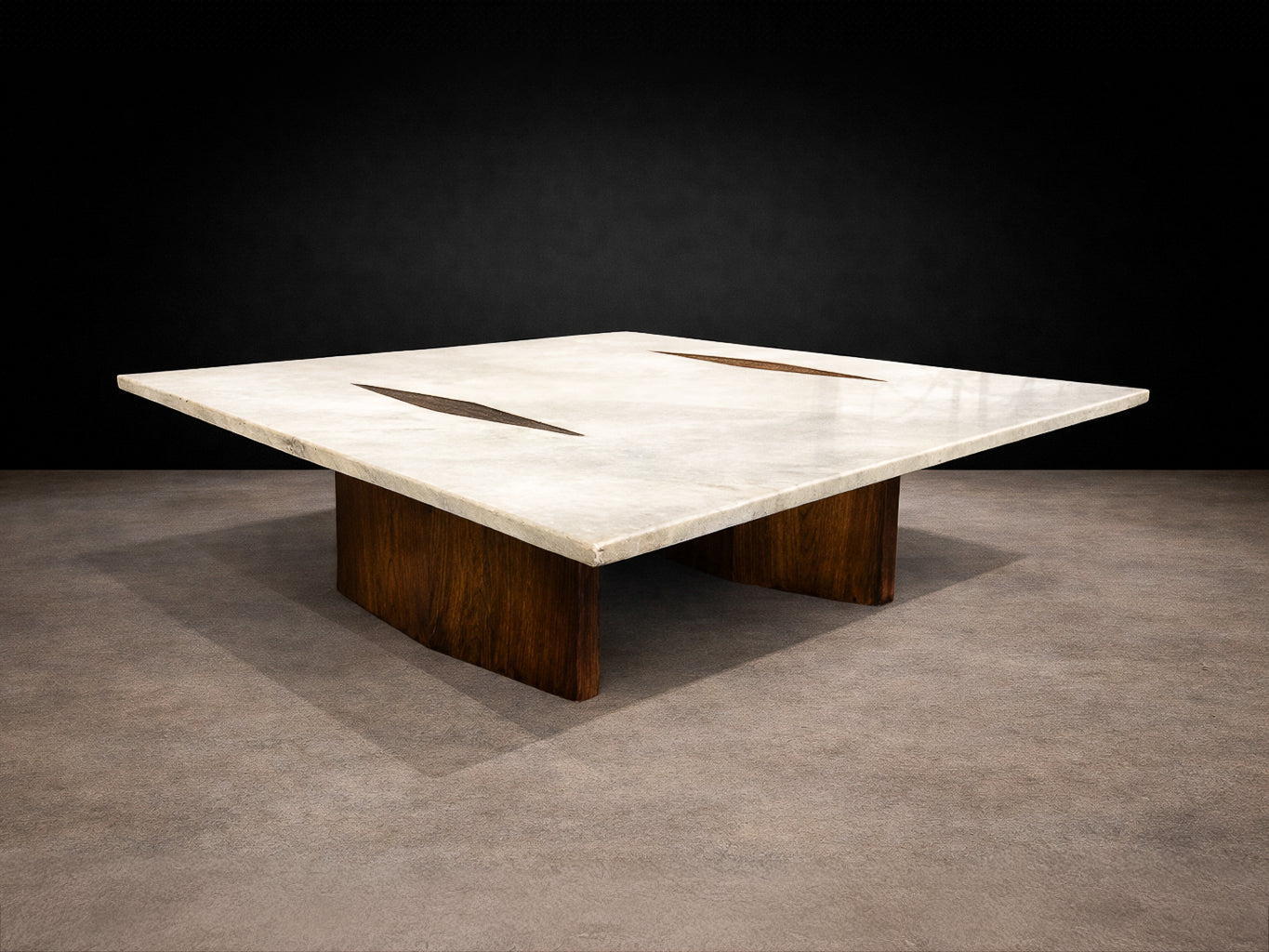 Zalszupin’s ingenious construction creates the illusion that the heavy stone surface floats effortlessly above its base, challenging conventional expectations of weight and balance. The precision with which the rosewood elements are embedded into the marble reflects the advanced craftsmanship and technical ambition characteristic of L’Atelier, Zalszupin’s São Paulo workshop, where modernist ideals were paired with meticulous execution.
