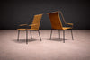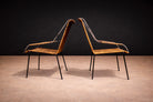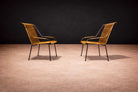 Designed by Carlo Hauner in the 1950s These armchairs exemplify the lightness and structural clarity that defined Brazilian outdoor design in the mid-20th century. Each chair is constructed on a slender iron frame, rising on four attenuated legs that support a gently reclined backrest and subtly curved seat. The armrests extend in a continuous linear gesture, reinforcing the graphic quality of the silhouette.