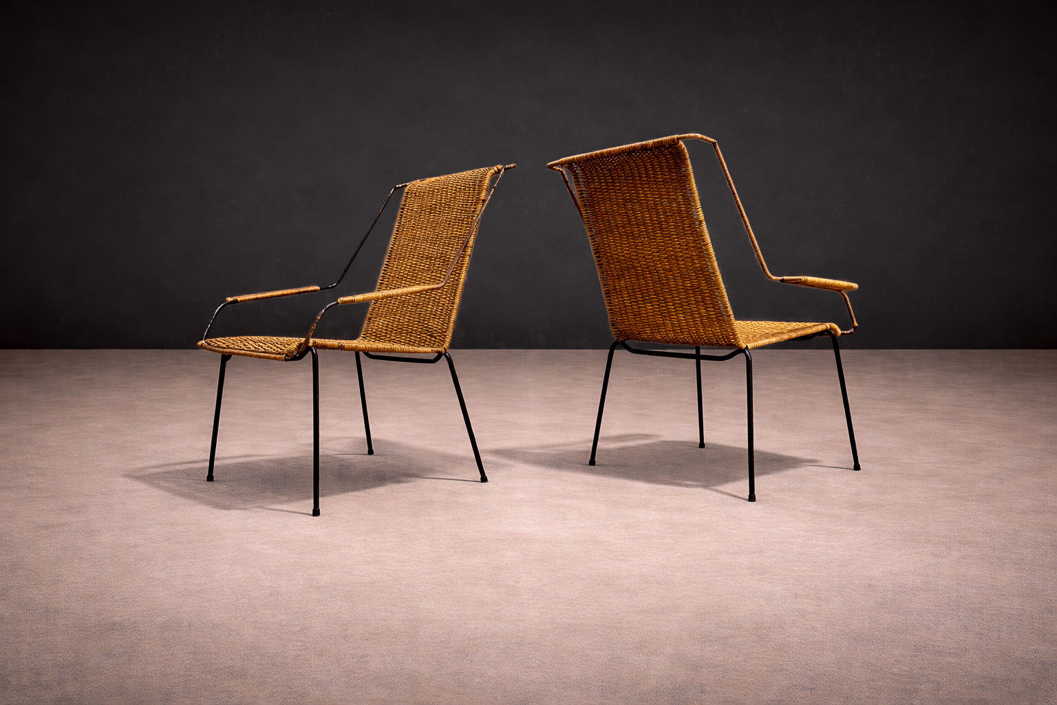 Pair of Armchairs wicker & Iron, Carlo Hauner, 1950s - Lot 232A