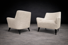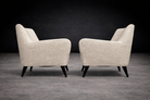 Function is absorbed seamlessly into form: the angled backrest and supportive seat create an ergonomic experience without disrupting the composition’s visual equilibrium. The pair is presented in excellent vintage condition, with restoration executed in keeping with period materials and proportions.