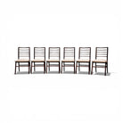 The design is characterized by a tall, linear backrest composed of evenly spaced horizontal slats, creating a measured rhythm that emphasizes verticality and lightness. The frame is notably slender, with narrow uprights and gently tapered legs that contribute to the chairs’ refined profile. This economy of structure is typical of Scapinelli’s seating designs, where the visual weight of the chair is reduced without compromising stability. The open back construction introduces negative space within the composition, allowing the chairs to maintain an airy presence around a dining table.